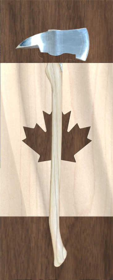 This is a 3D carved wavy flag plaque to mount your axe vertically. It is made of maple and walnut. Ask us about personalization. It is 18″ wide x 44″ long. The axe is not included. Our stock mounting bracket may not work with other axes but a custom one to fit a supplied axe could be made.